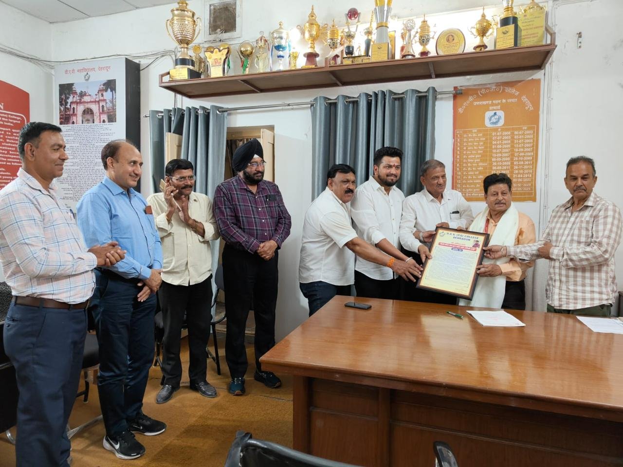 देहरादून । डीएवी (पीजी) कॉलेज के पूर्व निदेशक रोवर्स – रेंजर्स , पूर्व छात्रसंघ उपाध्यक्ष व मुख्य सलाहकार रहे यूथ रेडक्रास के मुख्य आपदा प्रबंधन अधिकारी डॉ० अनिल वर्मा को डीएवी कालेज प्रशासन एवं छात्रसंघ द्वारा कुल 155 बार रक्तदान हेतु “डीएवी कॉलेज रक्तभूषण लाईफ टाईम अचीवमेंट अवॉर्ड” से सम्मानित किया गया।